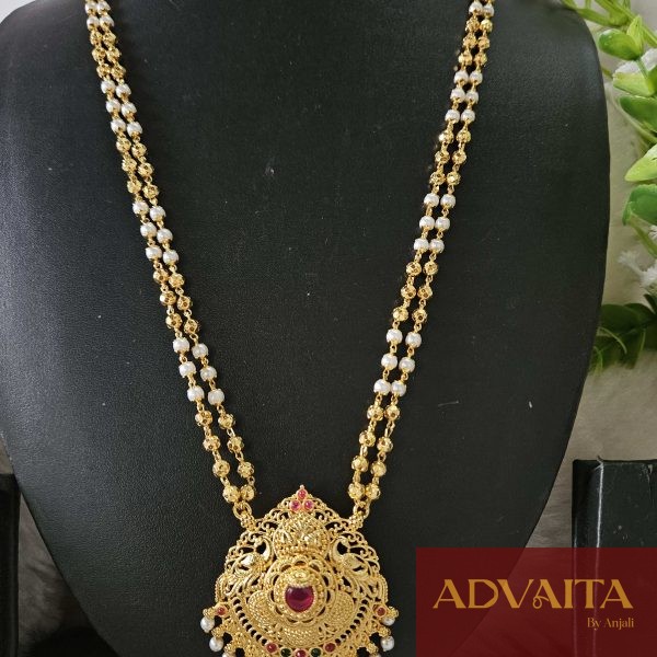 Two Layer Long Pearl Chain With Peacock Pearl Pendent