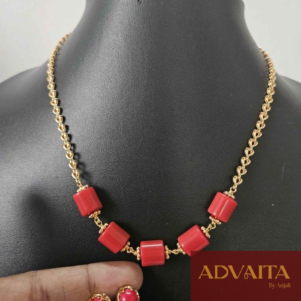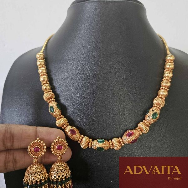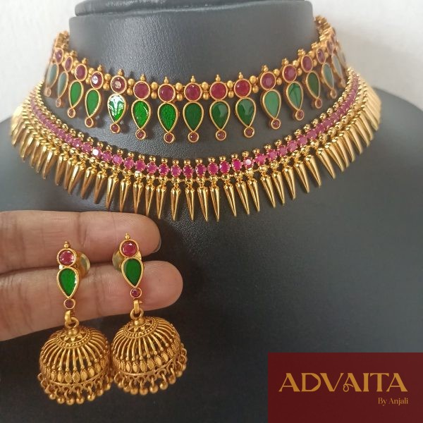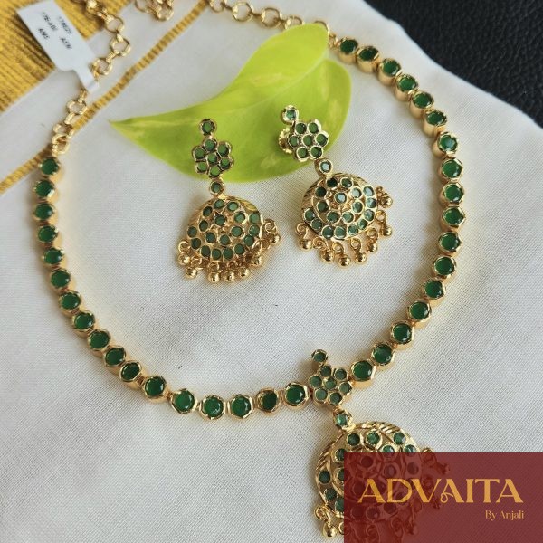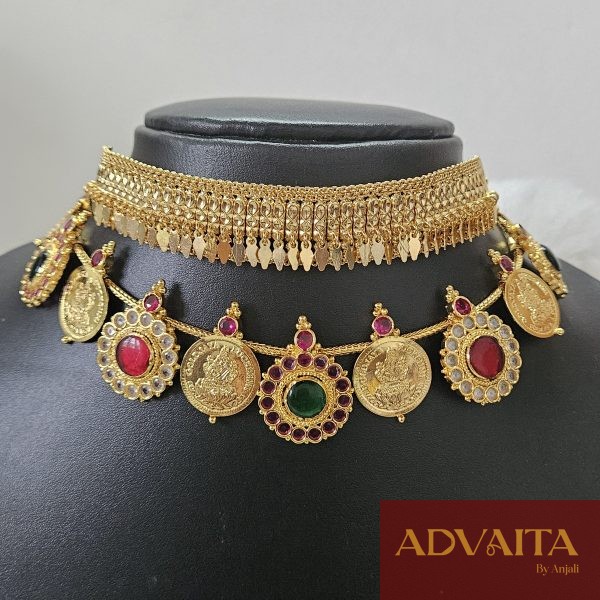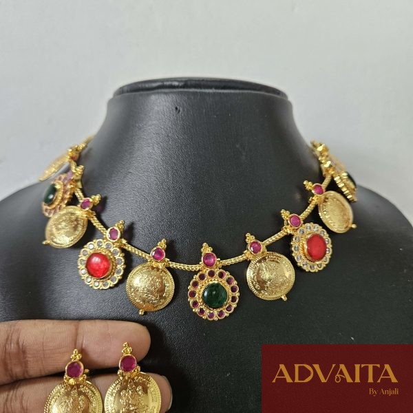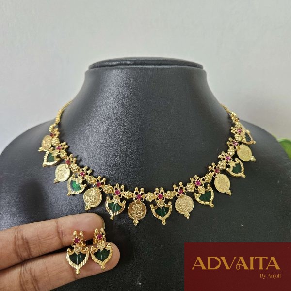 Goldlookalike Green Stone Palaka Coin Mix Necklace Set