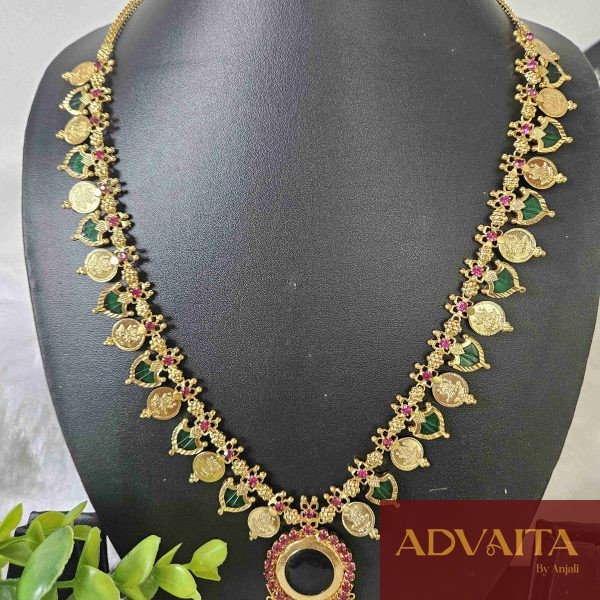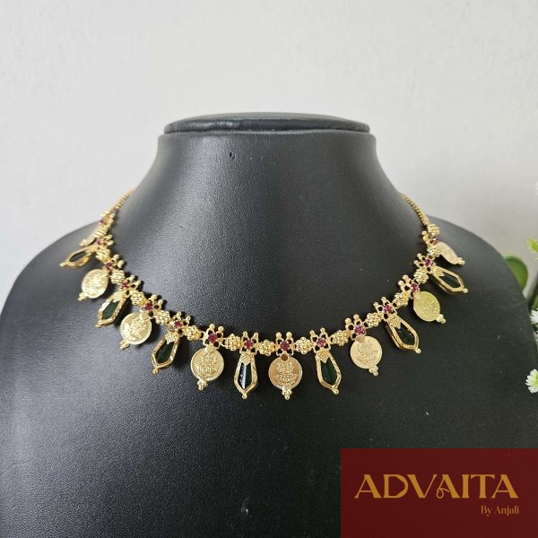 Goldlookalike Green Stone Nagapadam Kasu Mix necklace