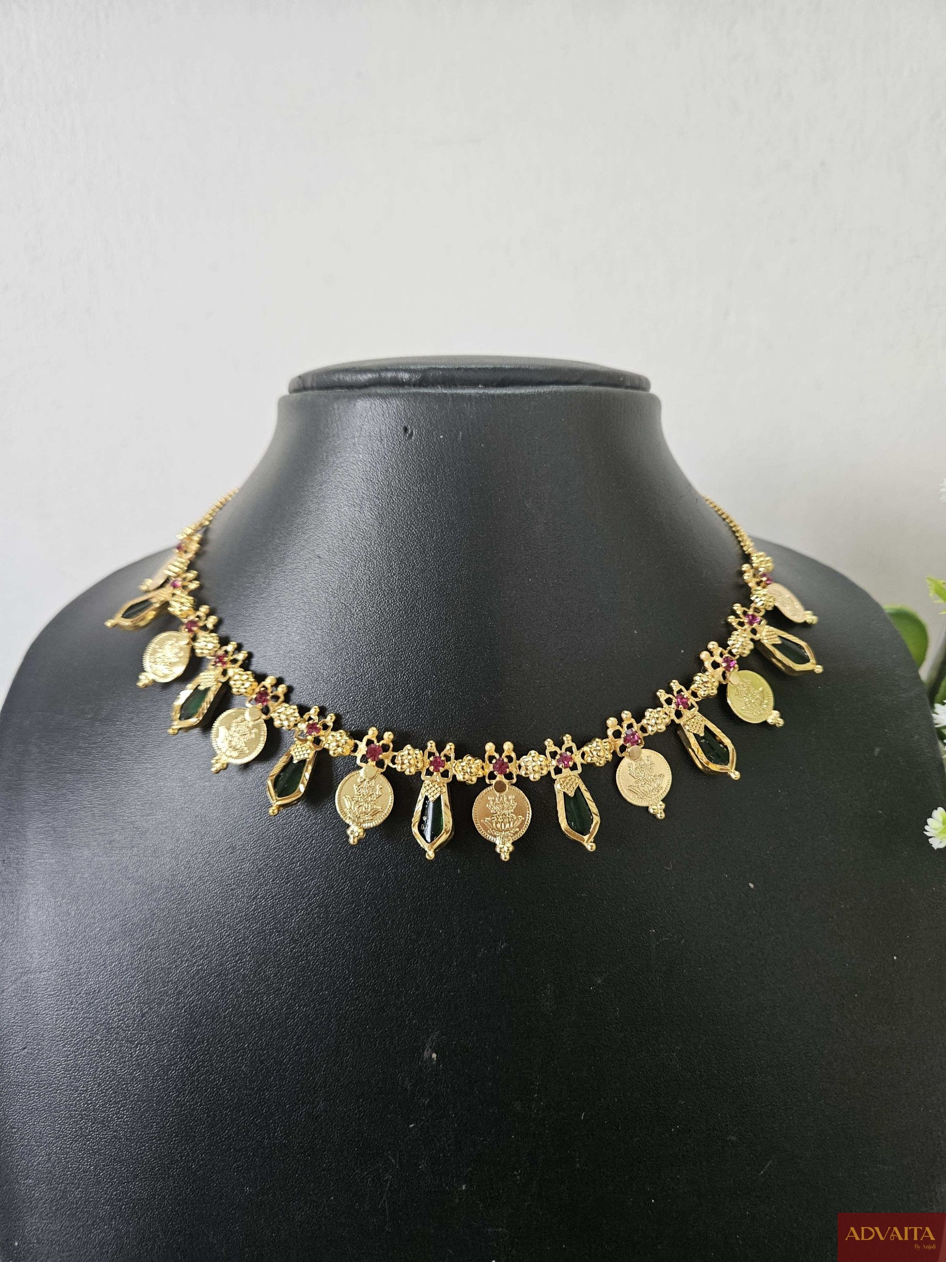 ![20250922_154455[1] Goldlookalike Green Stone Nagapadam Kasu Mix necklace - Image 1](https://advaitabyanjali.com/wp-content/uploads/2025/09/20250922_1544551-scaled.jpg)
