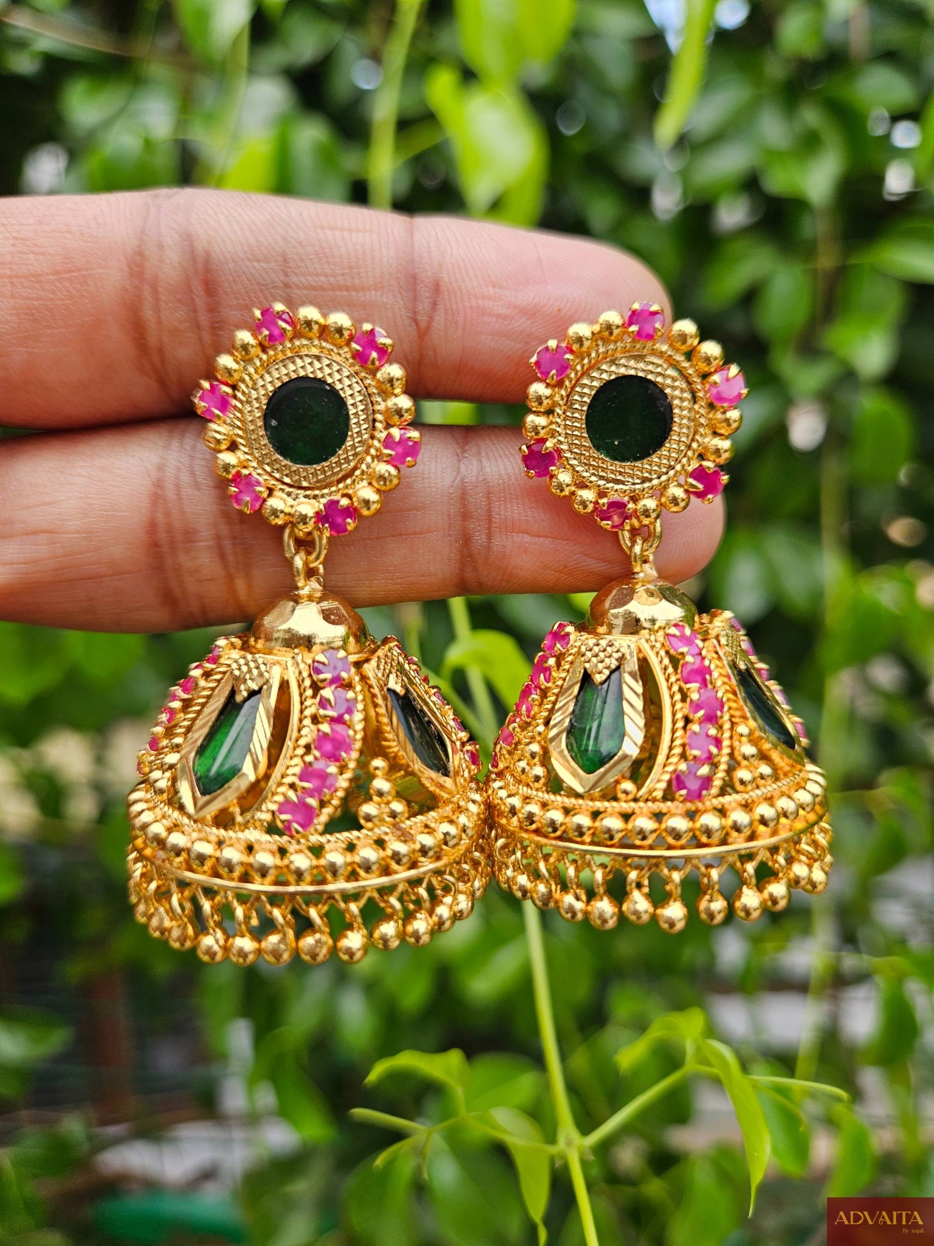 Premium Goldfinish Green Stone Nagapadam Jhumka