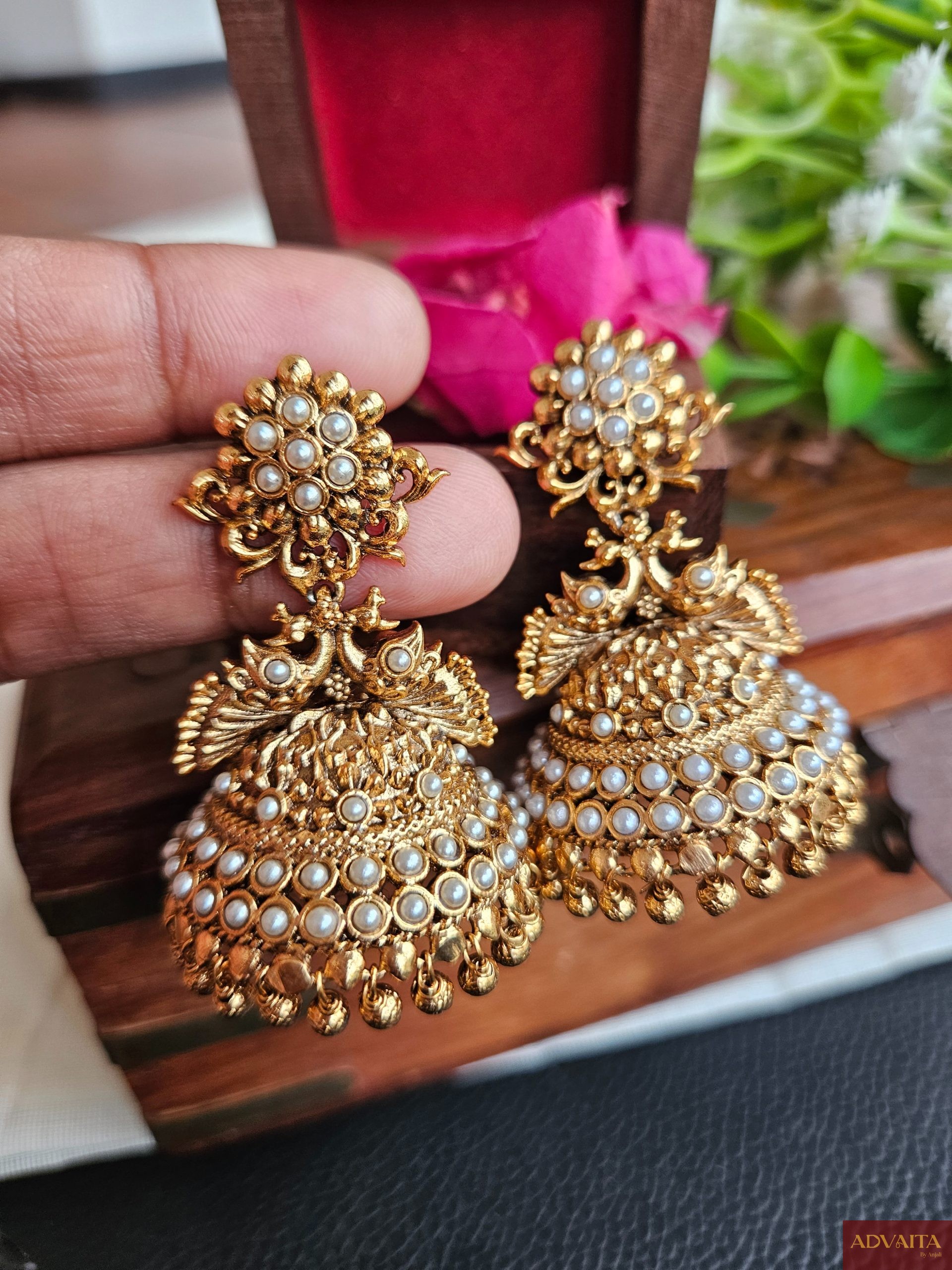 Home Earrings Jhumka Pearl Peacock Jhumka