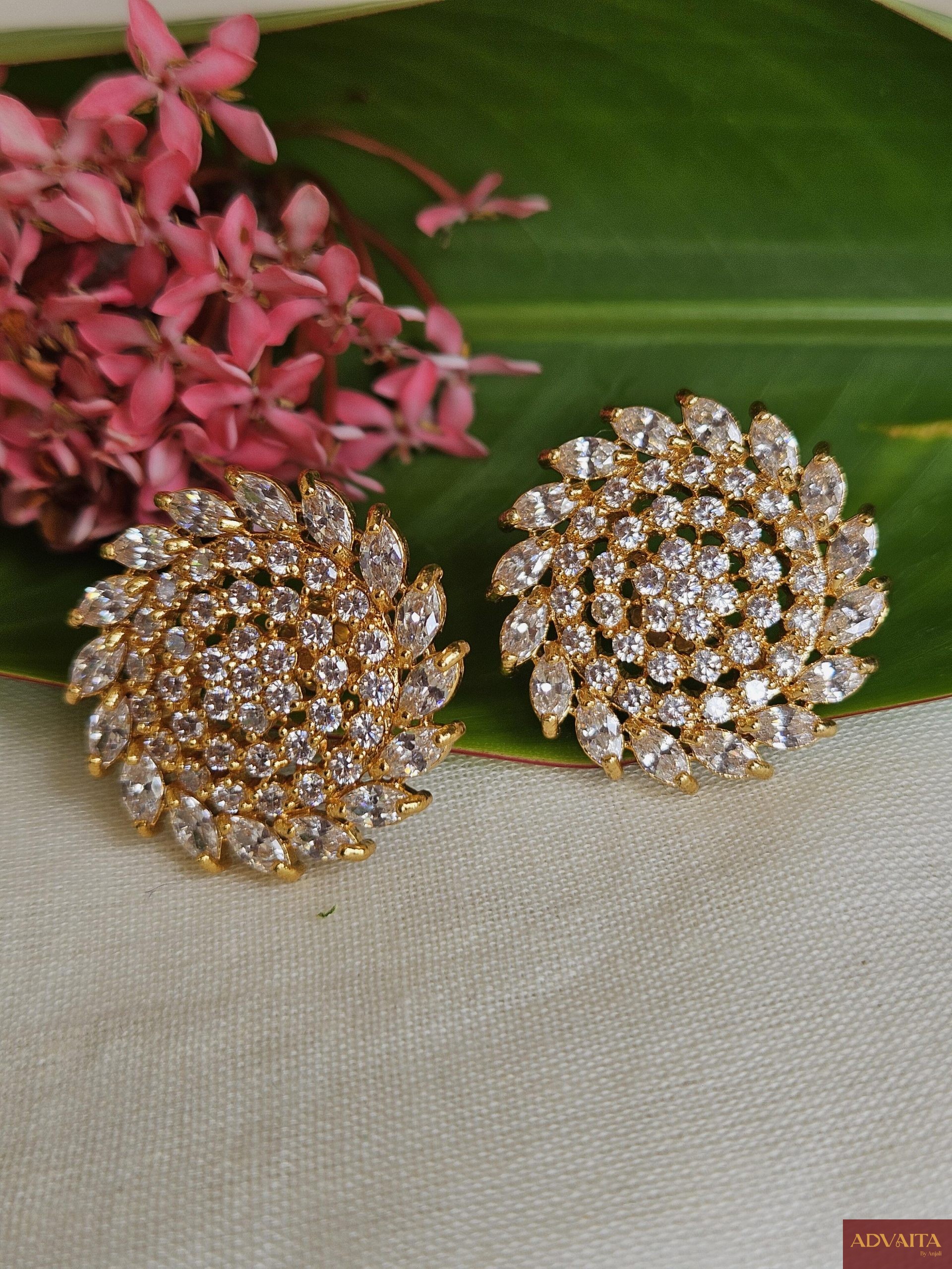 Premium Gold finish AD Stone Big Size Stud Earrings