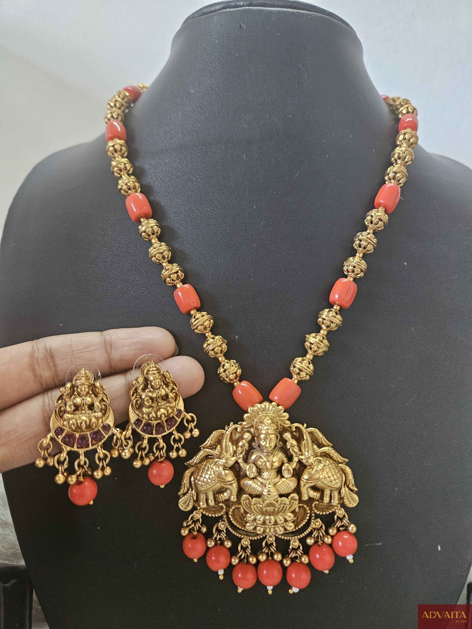 ![20250918_150950[1] Temple Design Coral Goddess Lakshmi Pendent Set - Image 1](https://advaitabyanjali.com/wp-content/uploads/2025/09/20250918_1509501-scaled.jpg)